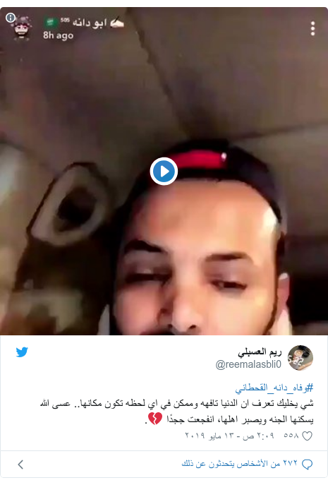 سناب مشعل القحطاني ابو دانه. حتى أصبح عملية البحث عن سناب دانه القحطاني كثيرا ولهذا سوف نوضح سناب شات غناتي داني دانه لمتابعة الحساب الذي حقق شهرة كبيرة لدانه القحطاني وكذلك سناب ابو دانه مشعل القحطاني بعد فقدان دانه القحطاني اثر ازمة قلبية. سنابات أبو دانه القحطاني دانه ذابيه من الحر درجه الحرارة ٤٧ وغني تطعم ابرتين duration. وقال مشعل القحطاني في إعلان نبأ وفاة ابنته بعد قضاء الله وقدره وبتاريخ 8 9 1440 هـ أصيبت بنتي دانه بنوبة قلبية أدت إلى وفاتها وانتقالها من دار الدنيا إلى جوار ربها وإنا لله وإنا إليه راجعون لله ما أخذ وله ما أعطى وكل شيء. انتشر أخر فيديو للطفلة دانه القحطاني قبل وفاتها بساعة واحدة فقط وفي الفيديو سألت الطفلة والدها أي سوق تبون تروحون فرد عليها والدها مشعل القحطاني قائلا.